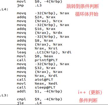 偏移计算:addq $8, %rax,每次偏移8字节(64位指针);