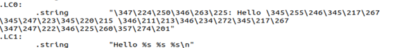 两个字符串常量存储在.rodata(只读数据段);